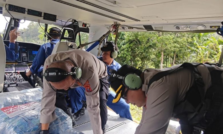 Kombes Pol Yudhi Surya Markus Pinem, S.I.K., M.H., yang memimpin distribusi bantuan tersebut menyampaikan bahwa pengiriman melalui udara menjadi opsi yang paling memungkinkan mengingat kondisi lapangan saat ini masih belum dapat dilalui kendaraan.