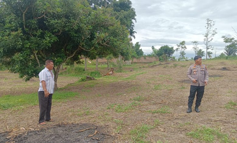 Kapolsek Siantar Marihat AKP Doni Simanjuntak SH dampingi Kabag SDM Polres Pematangsiantar AKP Maralidang Harahap SH melakukan pengecekan lahan penanaman jagung di Jalan Melanthon Siregar Gang Kuku Balam, Kelurahan Pematang Marihat, Kecamatan Siantar Marimbun, Kota Pematangsiantar, pada Senin 29 September 2025 pagi pukul : 10.00 WIB.