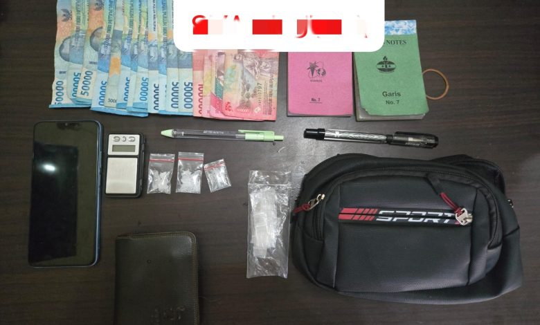Sementara itu, dari diduga pelaku TAS (20), diamankan barang bukti berupa 3 bungkus plastik klip bening berisi kristal putih yang diduga narkotika jenis sabu, 1 bal plastik klip bening kosong, 1 unit handphone android, 1 unit timbangan elektrik, 1 tas bertuliskan SPORT warna hitam, 2 pulpen, 2 buku catatan Bloc Notes, uang tunai sebesar Rp1.000.000, serta 1 dompet warna coklat.