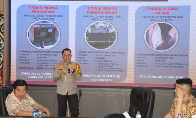 Penegasan itu disampaikan dalam konferensi pers di Aula Patriatama Polrestabes Medan, Kamis (5/2/2026). Polisi memastikan bahwa kasus pencurian, penganiayaan, dan kepemilikan senjata tajam memiliki alur hukum masing-masing dan tidak dapat dicampuradukkan.