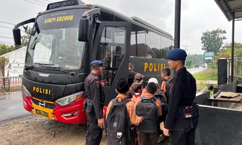 Para siswa tampak gembira saat dijemput oleh personel berseragam Brimob, sementara para orang tua menyampaikan rasa terima kasih dan apresiasi atas perhatian yang diberikan kepada anak-anak mereka.